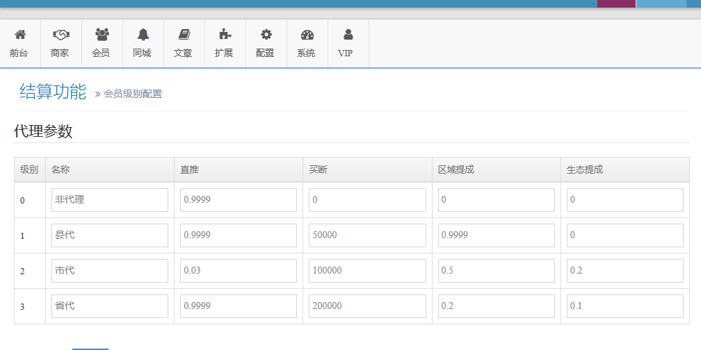 | 名称 | 级别要求 | 直投 | 直推 | 区域提成 | 生态链提成 |