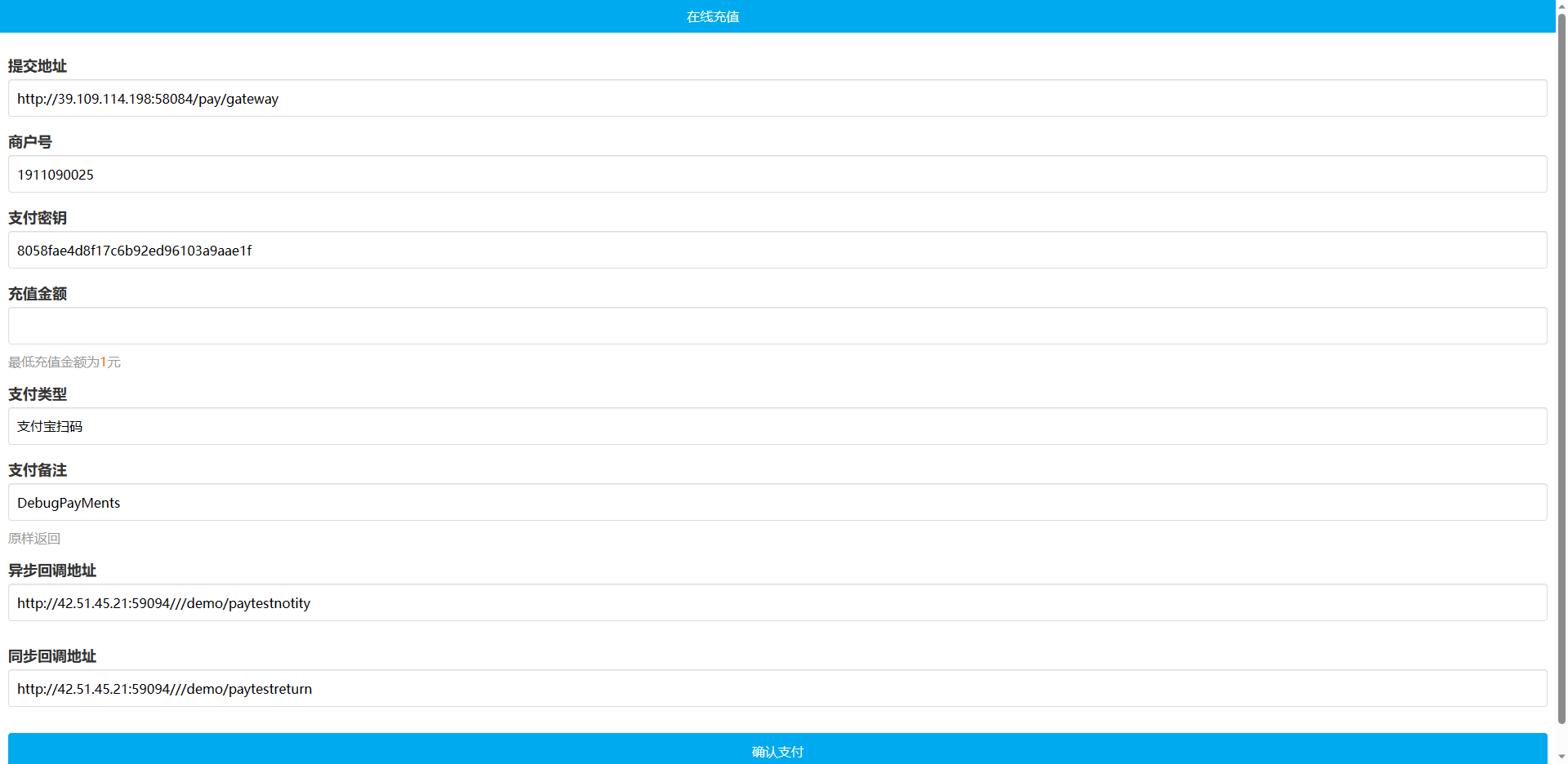 支付网关测试地址: http://42.51.45.21:59094/demo/test