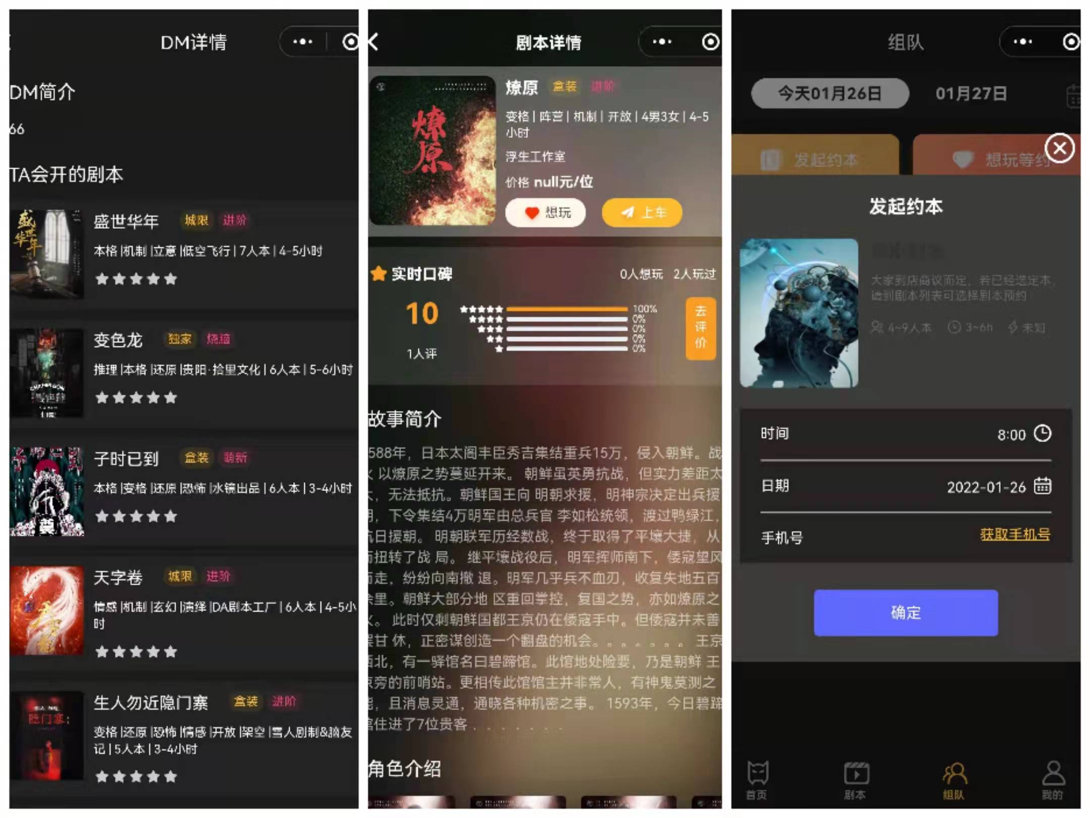剧本杀微信小程序! 多家门店已经成功上线运营,效果显著,功能完备。 店内DM展示简介,以及其所带的剧本。 根据热度会有DM排行还有剧本热度排行展示,便于新手玩家选本。 剧本分类明确玩家可以根据自己的兴趣去筛选查找。 支持玩家自主发起组队约本,亦或者想玩等约。 剧本一键导入分销功能齐全。 资源下载此资源下载价格为17000人民币立即购买
