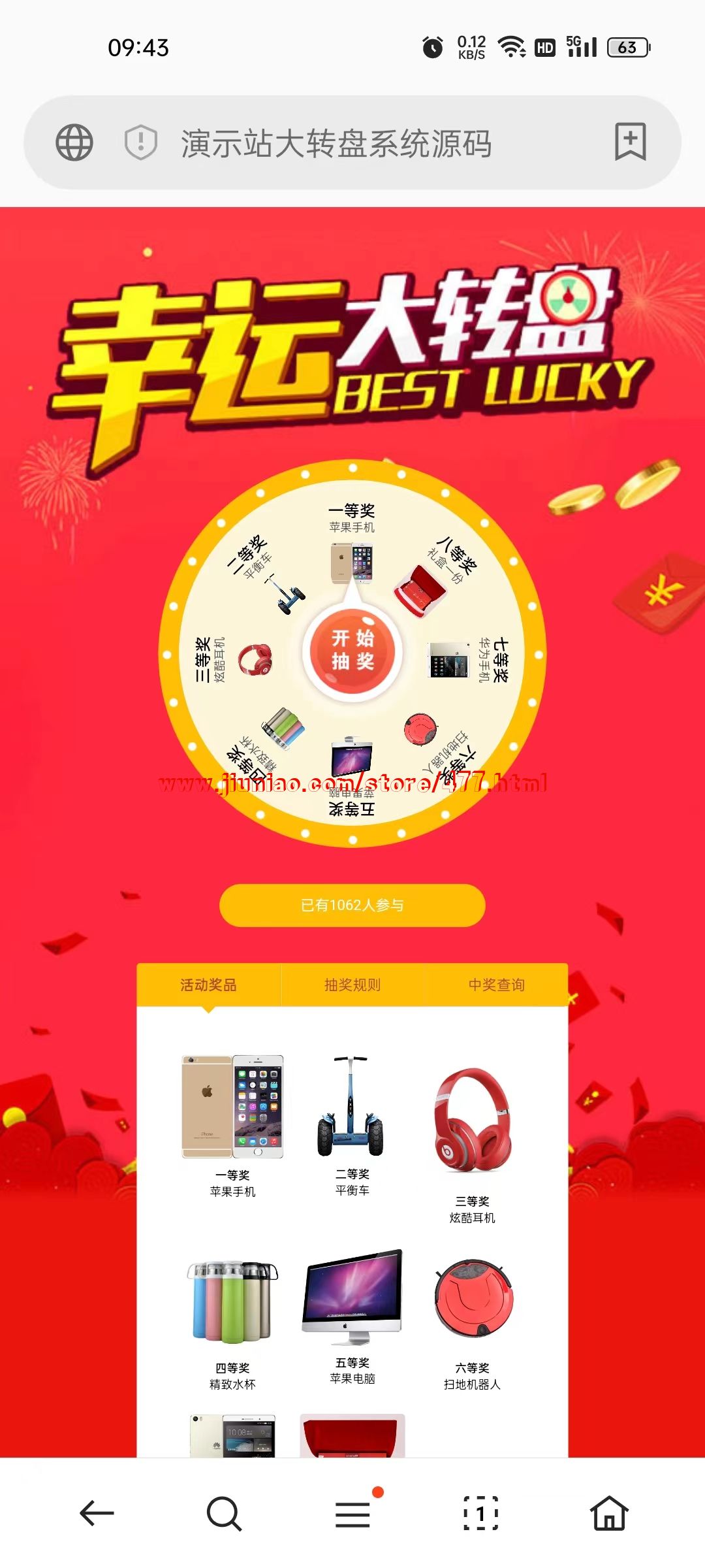 幸运大转盘抽奖源码,适用于营销活动可设置背景音乐,可设置奖品概率,可以设置奖项,可单独设置某个会员抽奖次数,后台提供可导入导出会员账号与抽奖次数。适用于公司活动维护老会员增加会员互动等等。