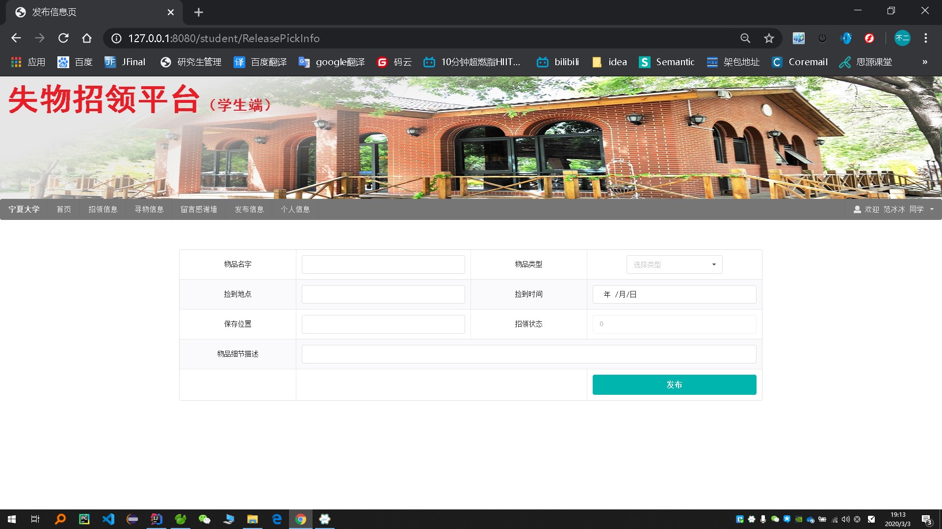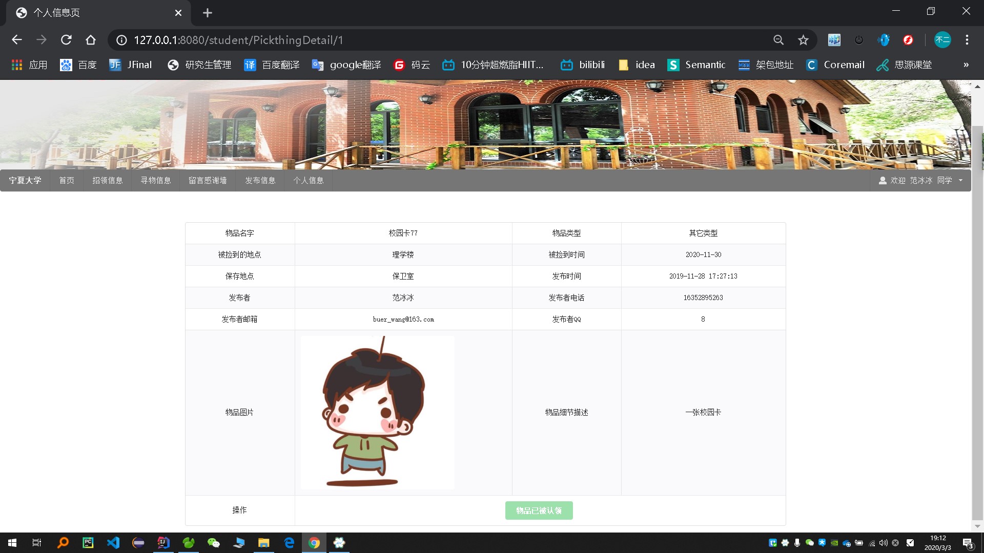 查看 发布、修改、删除自己发布的招领信息、寻物信息