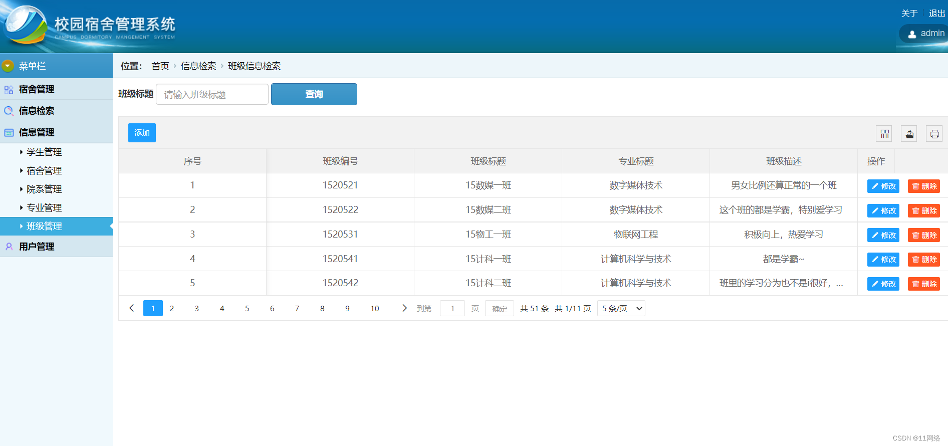 用户信息管理、学生管理、院系管理、专业信息管理、班级信息管理、宿舍信息管理等等