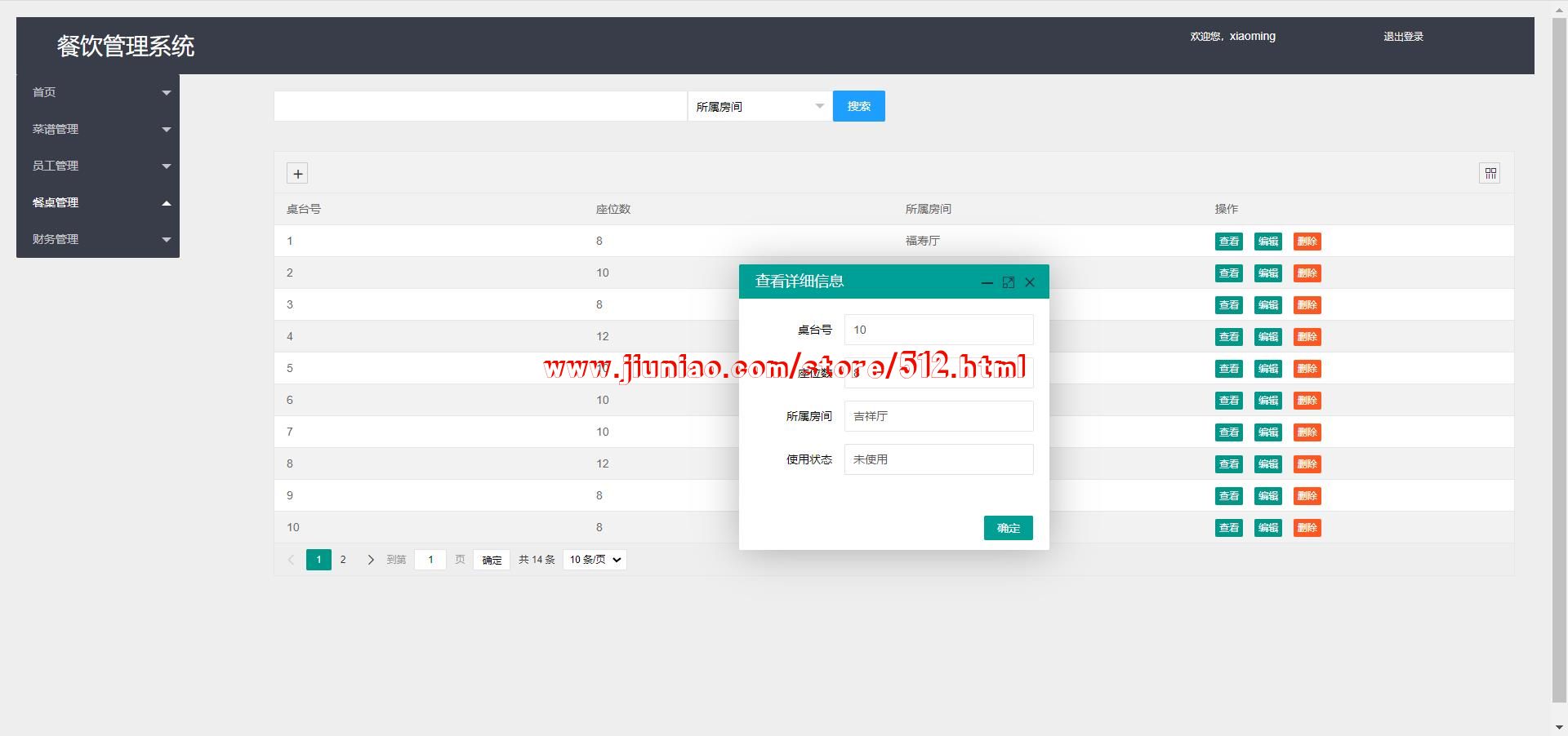 员工:查看餐桌状态、点餐、修改未结账的订单、结账等