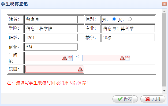 缺勤登记