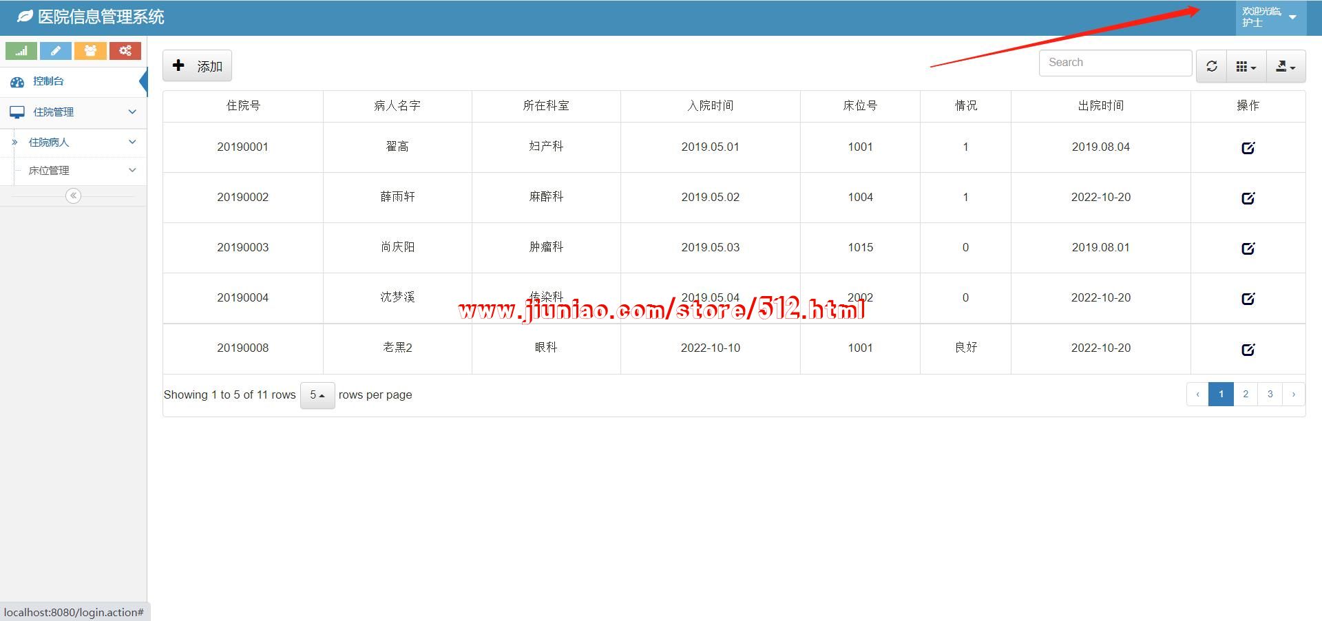 住院病人(添加住院病人、修改住院病人、查询指定住院病人、导出数据)