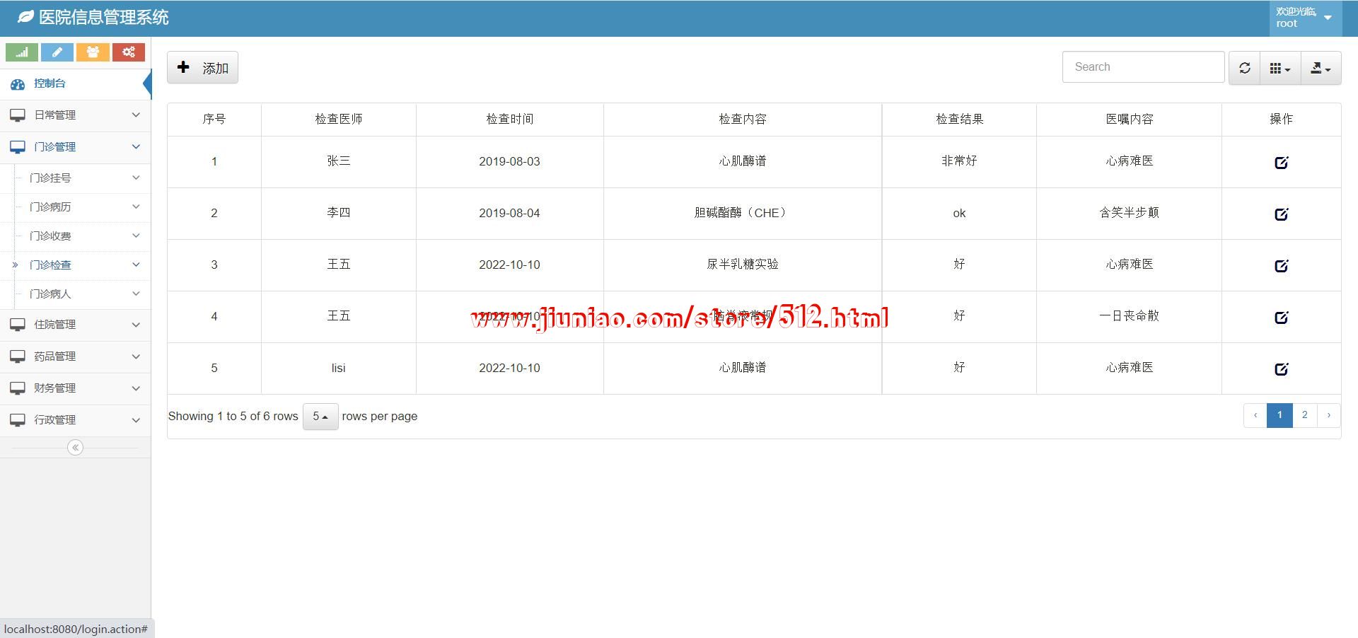 门诊检查(添加检查、修改检查、查询指定检查、导出数据)
