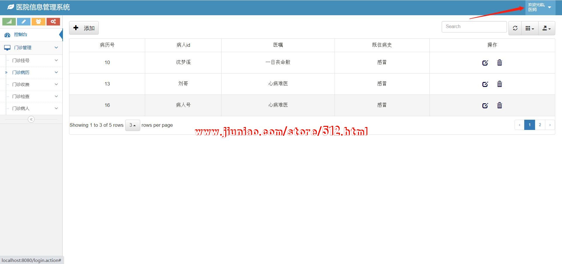 门诊病历(添加病历、删除病历、修改病历、查询指定病历、导出数据)
