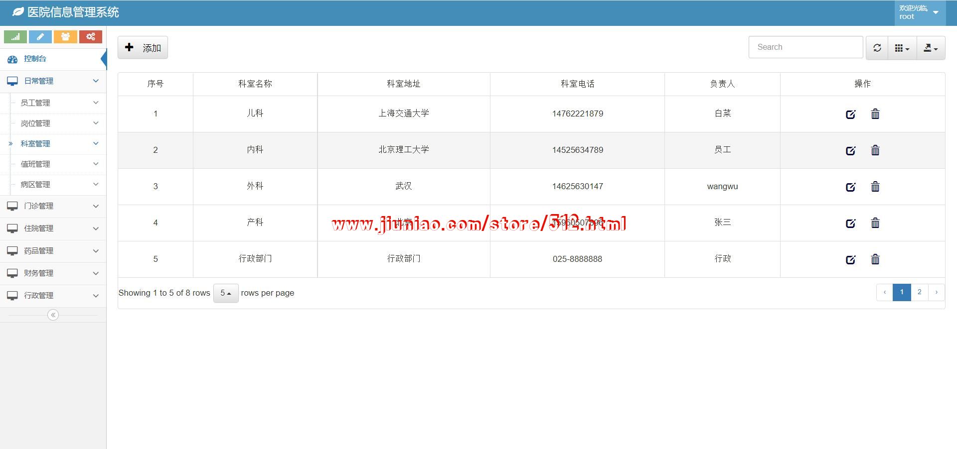 科室管理(添加科室、删除科室、修改科室、查询指定科室、导出数据)