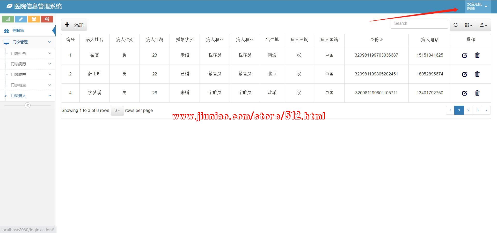 门诊病人(添加病人、删除病人、修改病人、查询指定病人、导出数据)