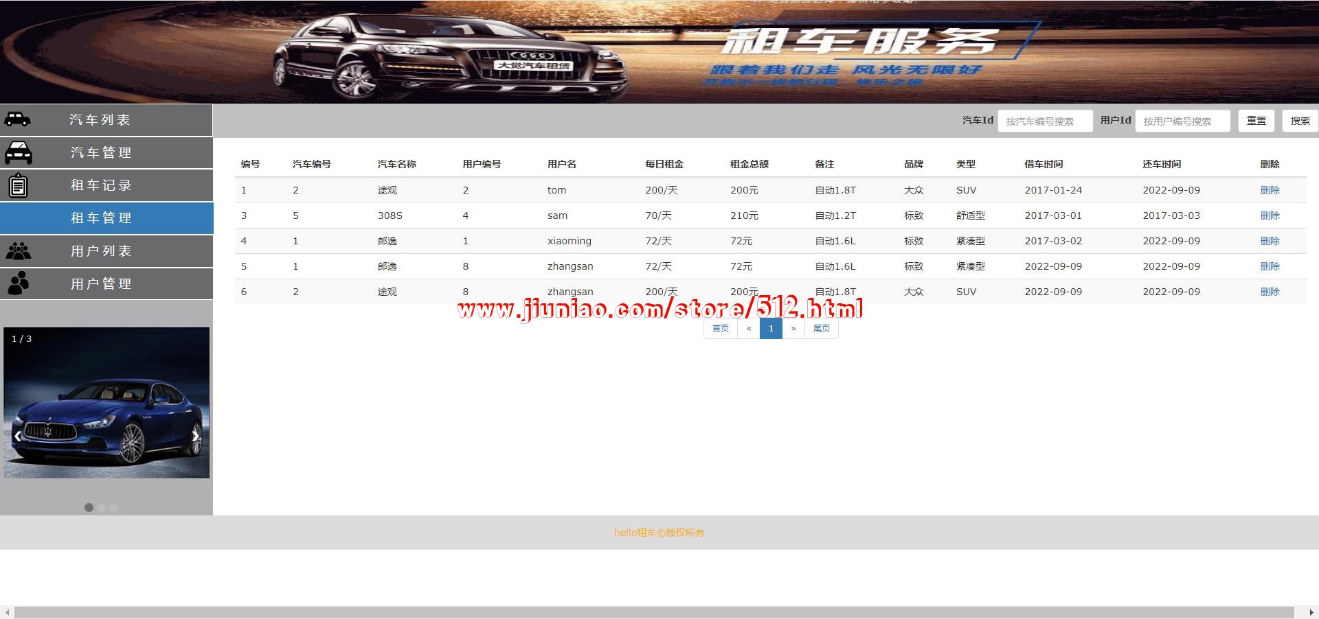 毕设-maven项目-在线租车系统