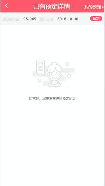 前台手机版预约系统包括 日历查看预定信息,点击进入所选日期详细预约信息,日历上一月下一月翻月功能,可以查看历史月份的预定情况,预约除当前月份之前以后月份的会议室信息,查看当前月份之后的月份的会议室预定信息