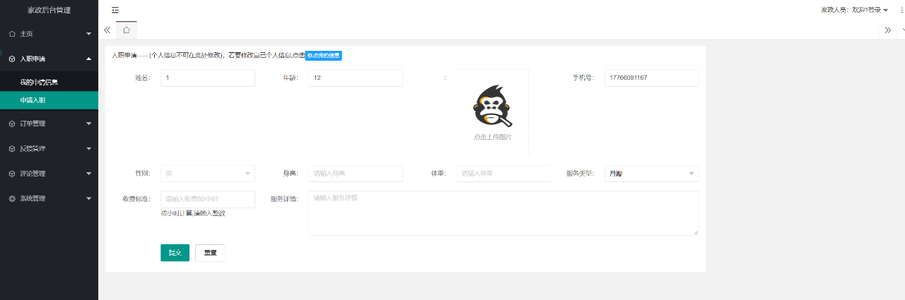编辑家政人员管理