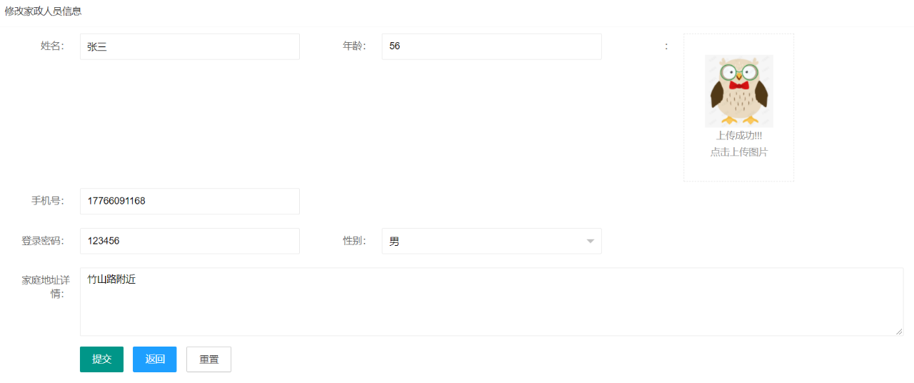 编辑修改家政人员
