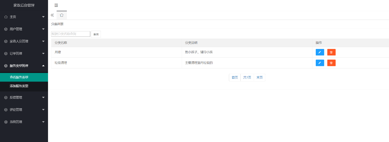 项目名称:基于SSM的家政服务平台