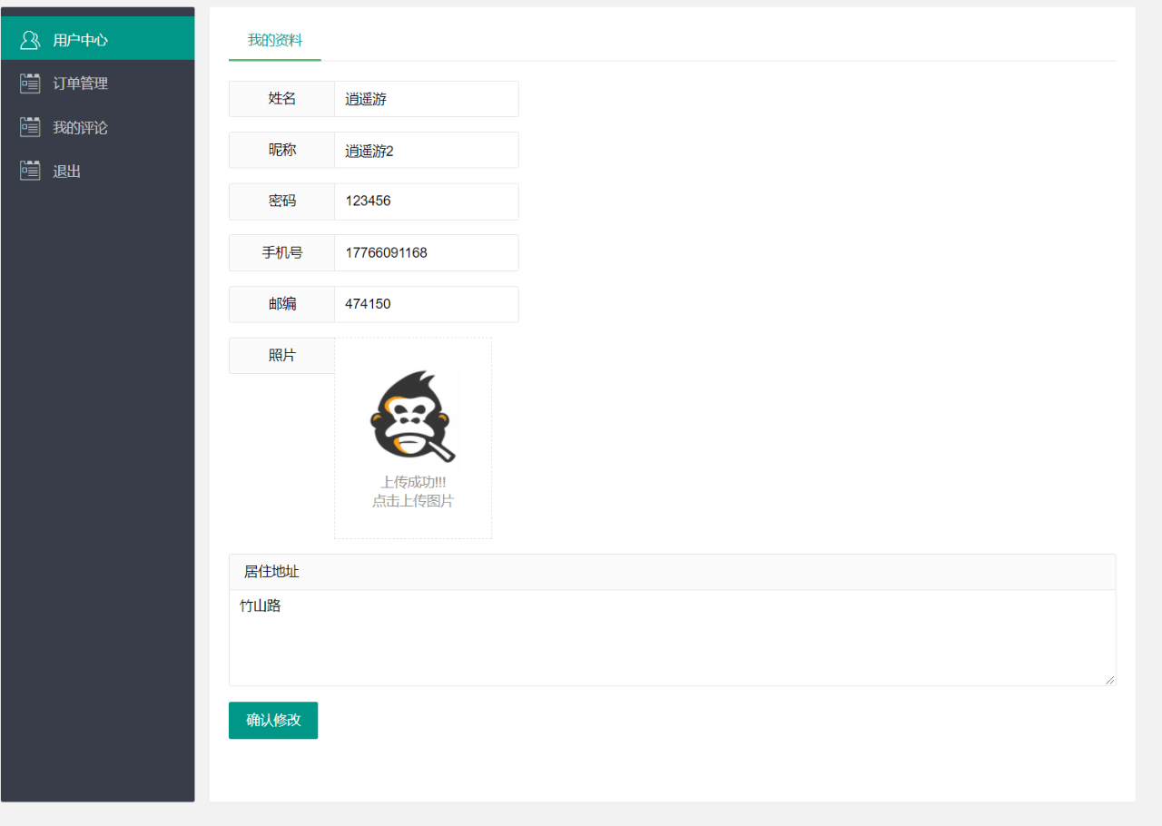 用户端主要有注册、登录、个人中心、我的订单、我的评论。
