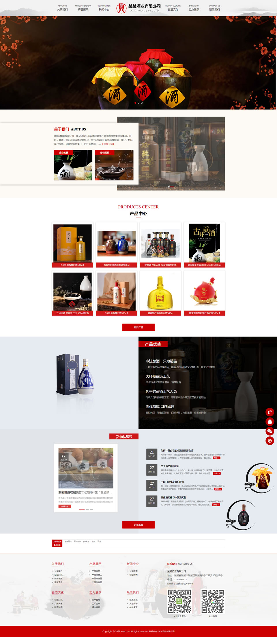 模板程序自己制作销售,纯手工制作网站代码本网站源码以红色为主,酒类企业网站源码,适合白酒生产,白酒展示,食品酿造,酒盒包装,酒水展示等相关行业的企业网站制作与网站建设需要。