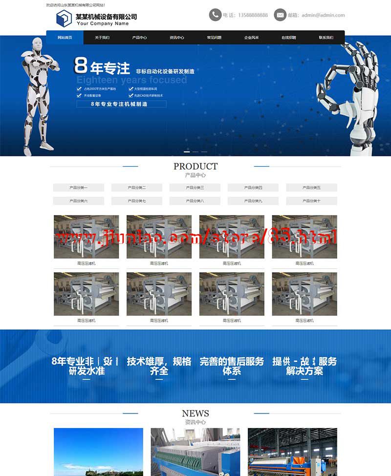 pbootcms蓝色工业机械设备制造企业网站源码 带手机版