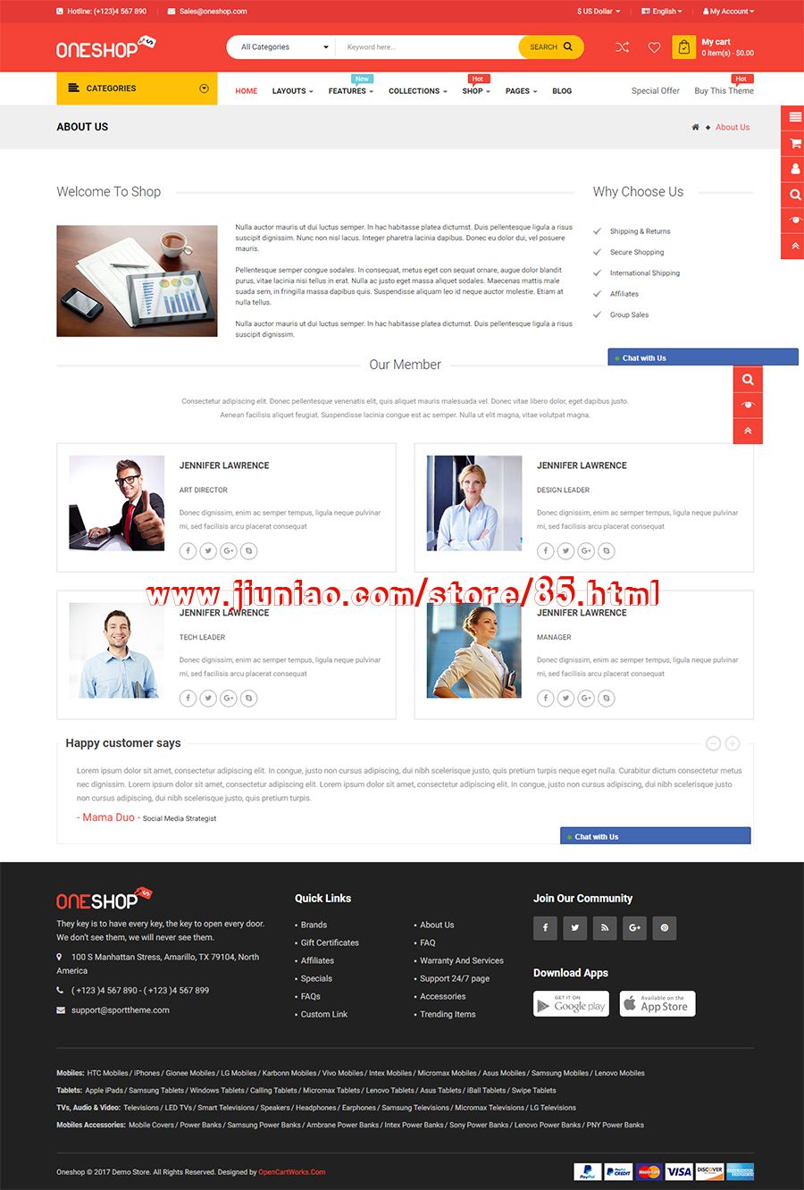 OneShop是任何新兴的高科技或时尚商店的多功能OpenCart主题。支持OpenCart 3.0.x,此主题具有适用于任何电子商务网站的现代模板的全部功能。有了独特的主页,客户现在可以轻松选择与产品相匹配的默认设计,并具有许多新功能,例如Onepage Checkout,Facebook Messenger livechat,Social Login,Quick Tool等。这种集成将为客户带来体验网站的许多好处