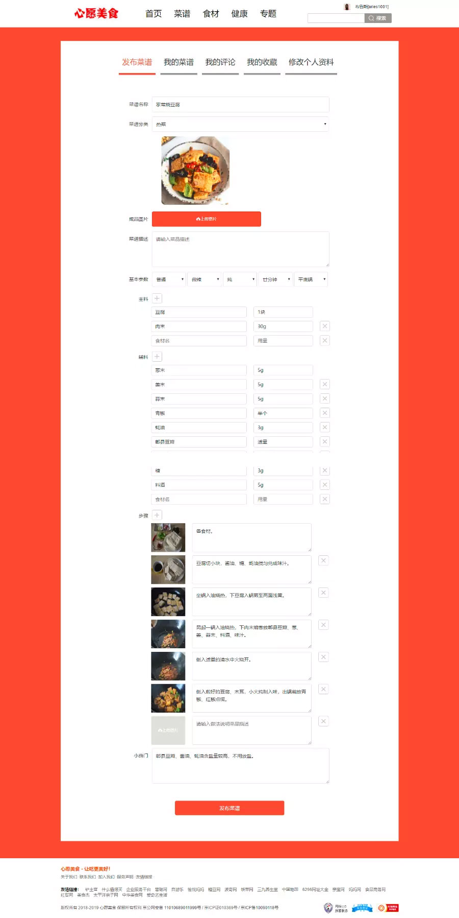 菜谱:菜谱分为热菜,凉菜,汤羹,主食,小吃,西餐,烘焙,饮品,零食,泡酱腌菜等栏目,每个栏目可以在后台设置模板,利用模板将各个栏目展示成不同风格。