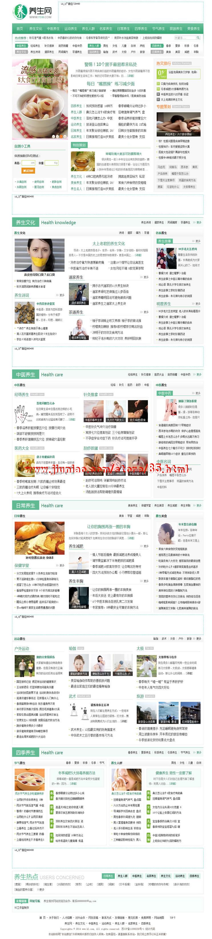 仿养生网网 拥有8个频道,30余个子栏目,涵盖了四季养生,养生人群,中医养生,运动养生,日常养生,名家养生,养生文化相关的各方面资讯