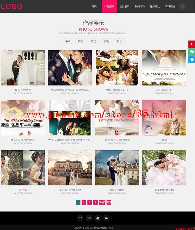 帝国CMS大气响应式婚纱摄影机构网站源码 自适应手机端
