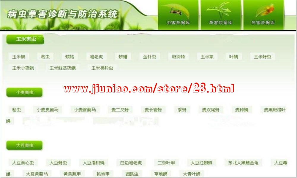网站前台模块:主要包括虫害数据库、草害数据库、病害数据库信息的浏览。