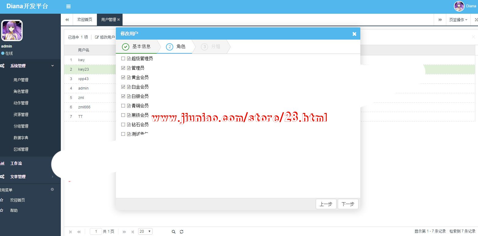 Diana开发框架提供了基于rbac(role based access control)的形式的权限控制,按角色、按部门、按用户组都可以,操作权限细化到了界面上的每一个按钮,并且将权限细分为静态权限和动态权限,这样将资源和动作分离开,避免程序耦合度高,实现两者的独立运行,以适用于复杂的权限系统。
