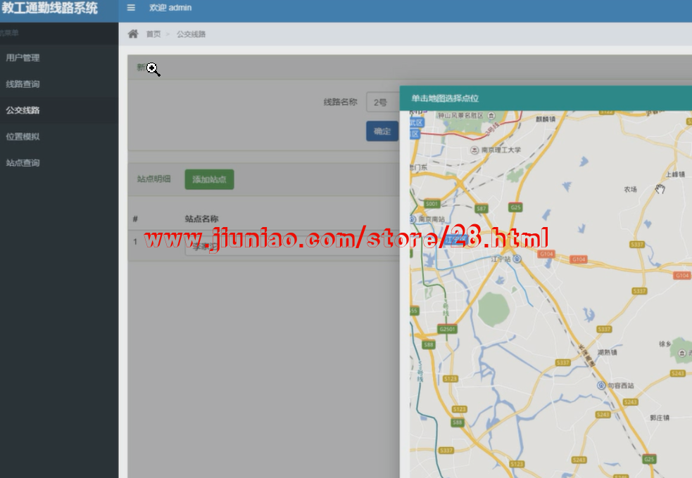 系统的功能用户注册、用户登录、线路管理、站点管理模块、用户管理、位置模拟、个人信息管理