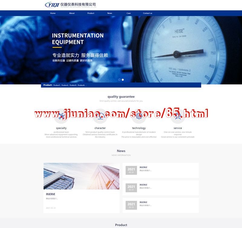 帝国cms蓝色响应式英文外贸仪器仪表科技公司网站源码 自适应手机端