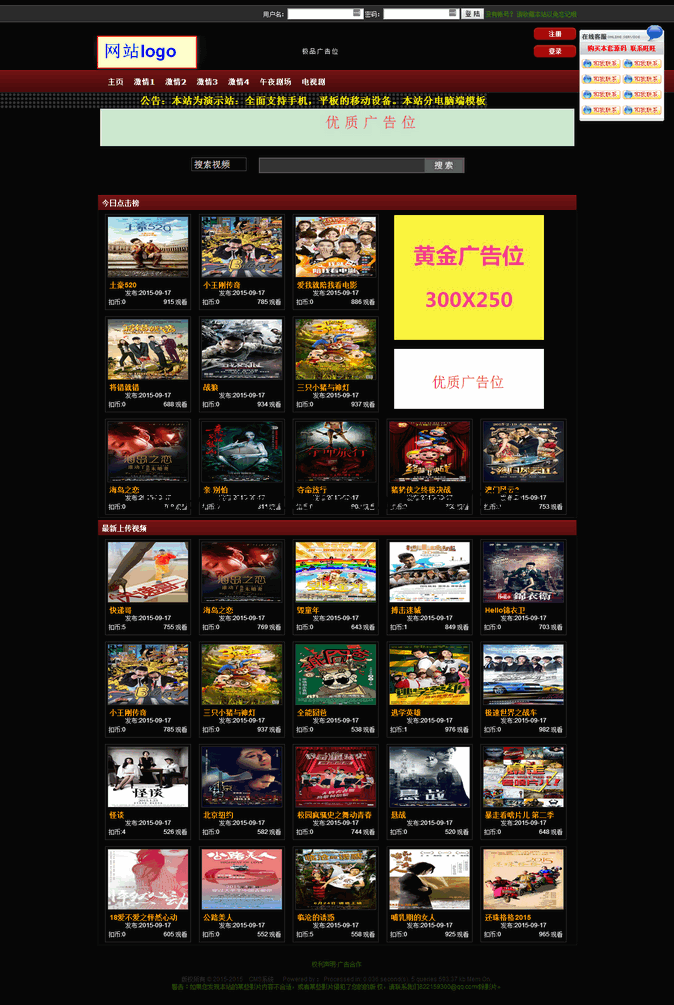 二次开发程序,全面支持手机,平板的移动设备。本站分电脑端模板及移动端模板,带会员中心,带会员推广中心。会员中心分电脑端模板及移动端模板。集成了网络主流的各大全能播放器。整合了支付宝签约即时到账接口,支付宝免签约即时到账接口 ,后台带会员管理中心带批量发信息给会员功能。