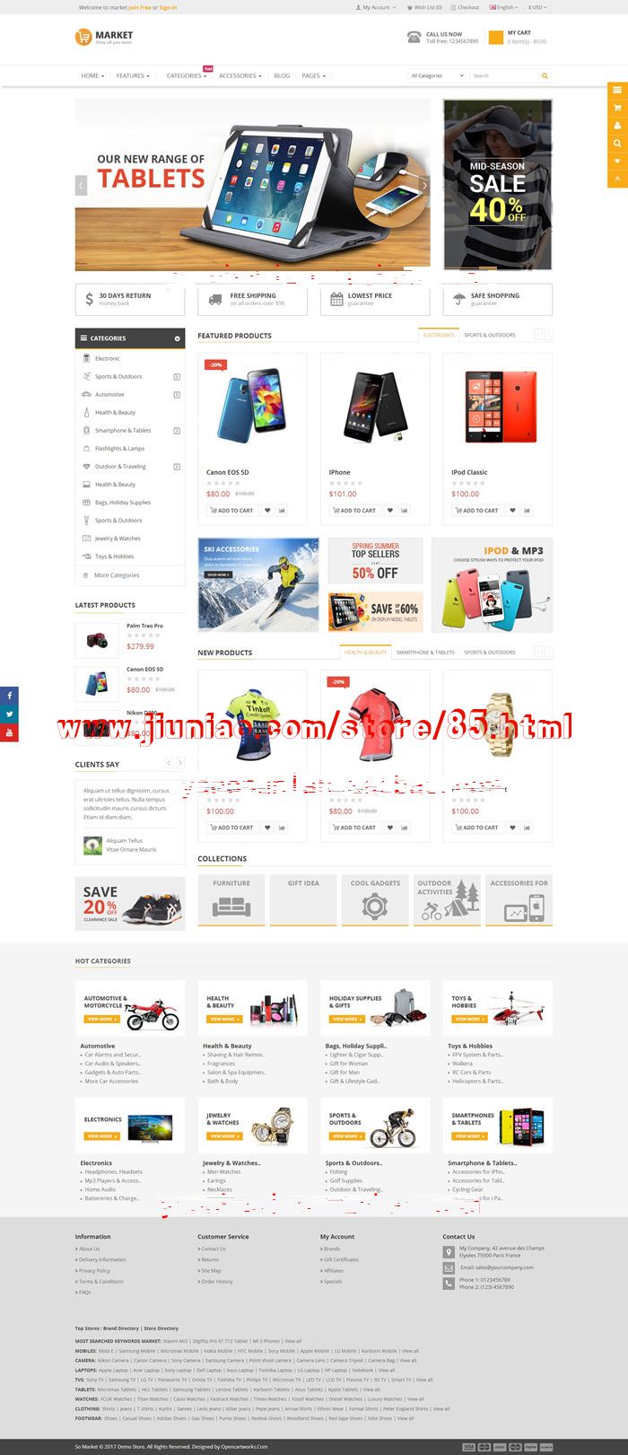 OPENCART外贸模板PHP后台商城外贸英文电子数码IT科技源码英文购物网站多语言主题