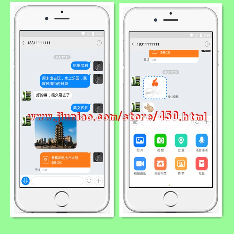 APP经过多年技术积累,完美兼容市场上常见手机设备。具有丰富完整的即时通讯功能,支持阅后即焚,消息撤回,群禁言,个人禁言,红包,消息回执等功能。聊天支持文字、语音、图片、视频、表情、文件等全类型消息收发。可根据企业需求快速搭建部署完全私有聊天系统,消息通讯采用私有二进制加密协议、RSA+流式加密传输安全可靠。负载均衡分布式消息转发技术,进一步提升服务器的健壮稳定。此系统花费多年时间优化,并非网络简单赝品可比,支持二次开发。现将全部源码打包出售,有DEMO版欢畅体验,咨询请联系:VX:yunliaoim QQ:340554038