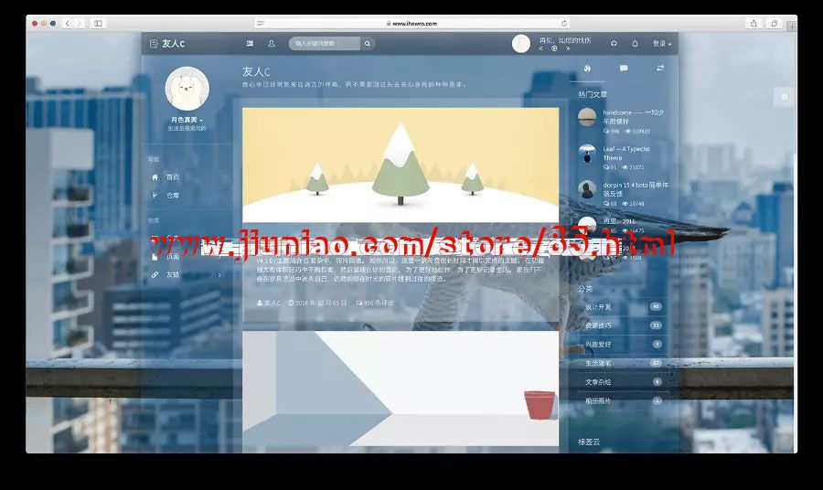 基于 Typecho主题handsome 开发的一款功能强大,界面华丽美观的个人博客留言相册门户网站模板