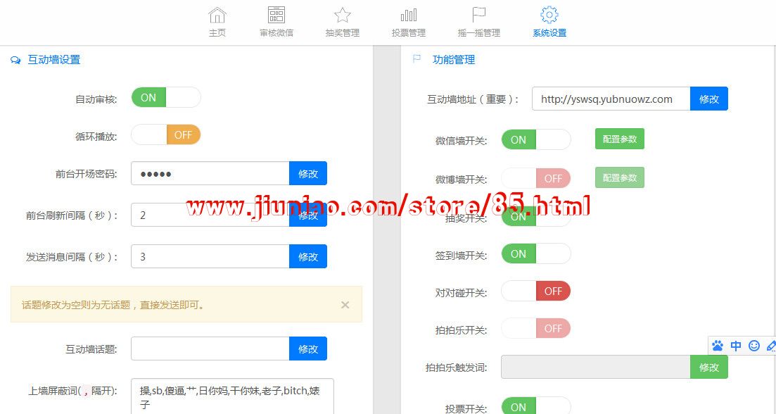 抽奖是在大屏上直接参与的 摇一摇和投票是需要回复关键字