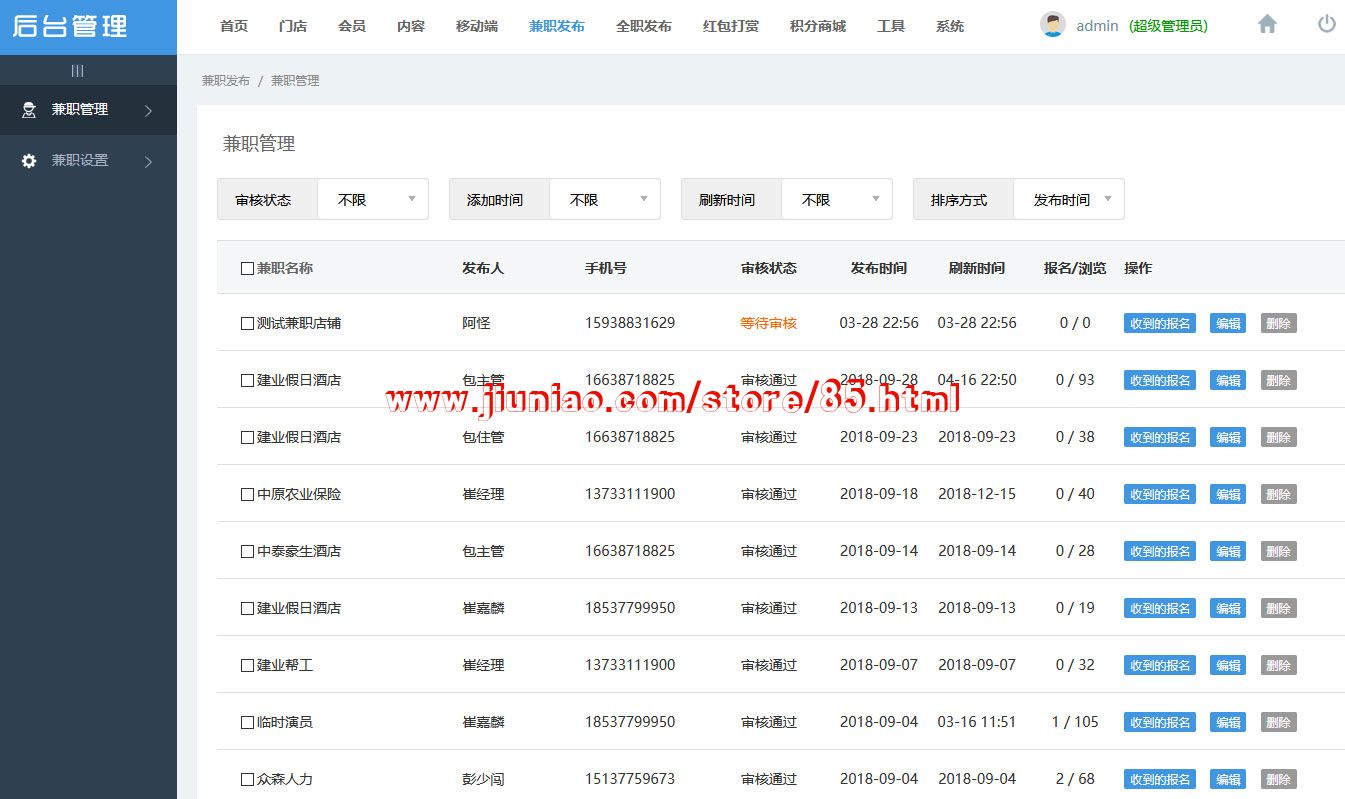可以在线免费报名系统的劳务人力资源招聘系统,方便解决了大部正在找工作的人,还带有积分商城和个人中心。