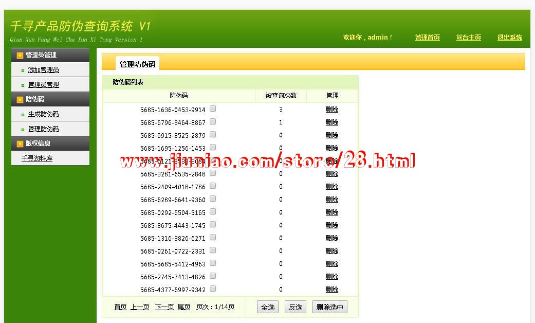 适用于各生产厂家对产品设置防伪功能,后台可以批量生成防伪码,前台通过防伪码可以查询产品真伪。