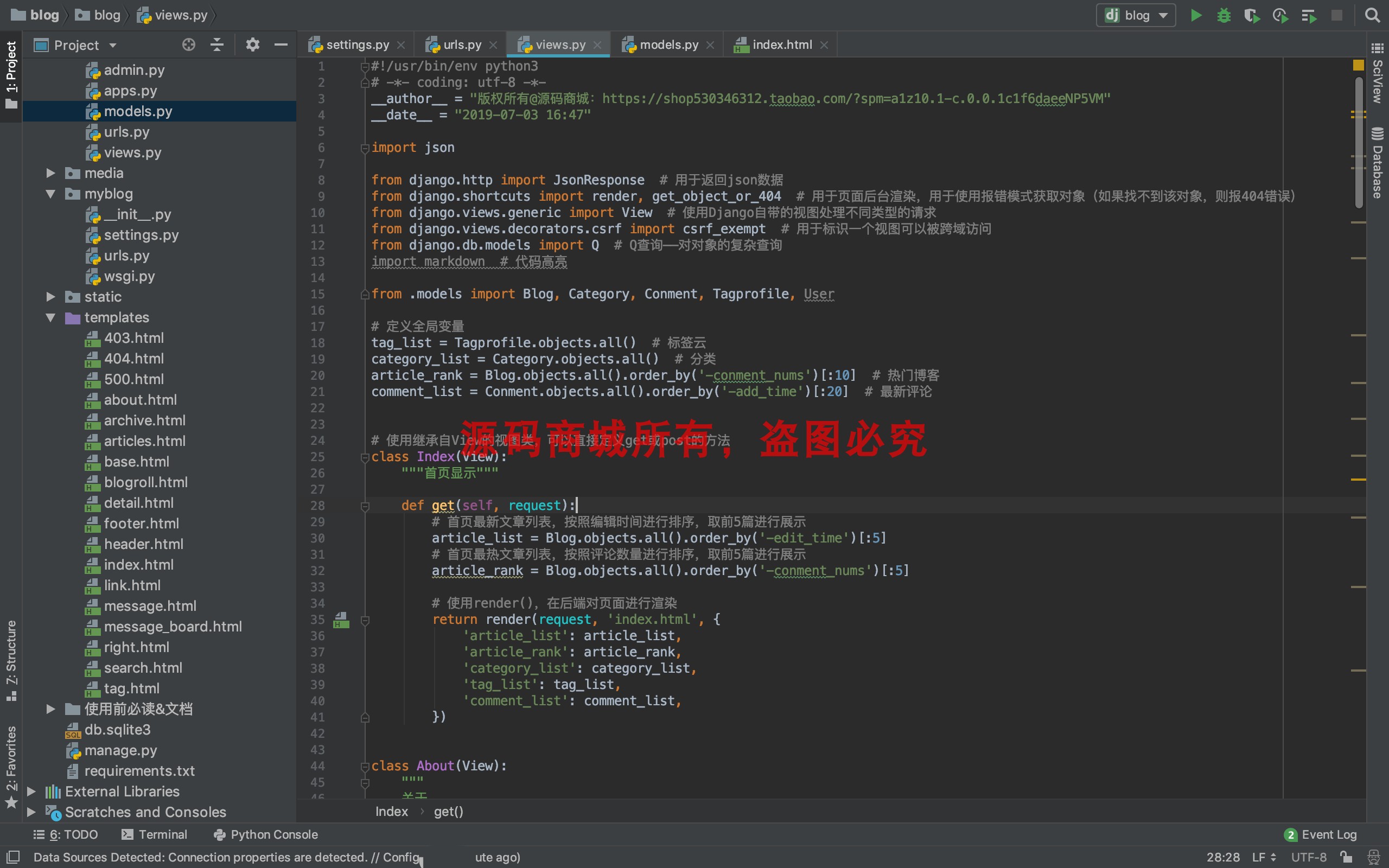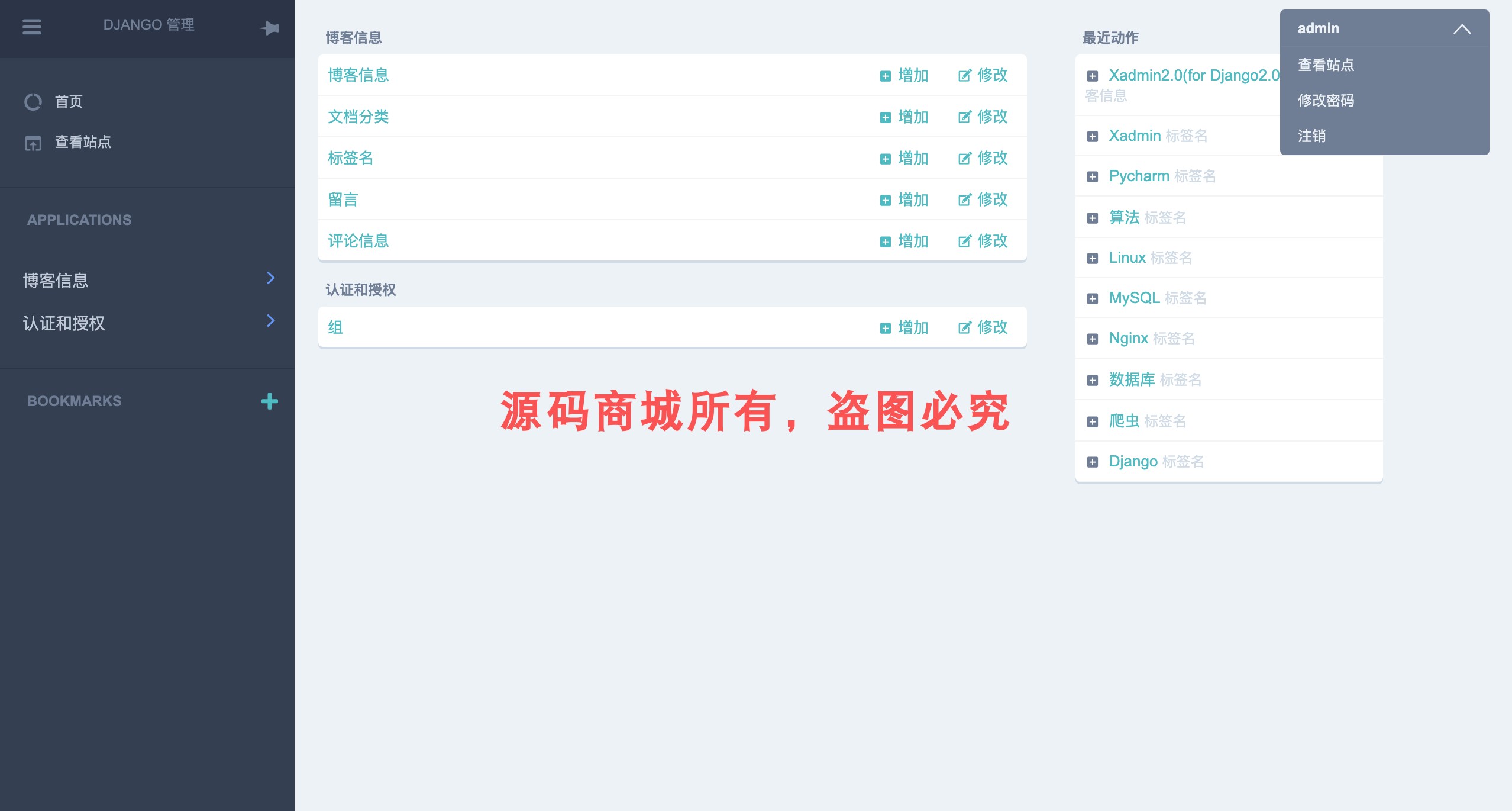 个人博客项目Python3+Django2源码带后台html5自适应完整文档