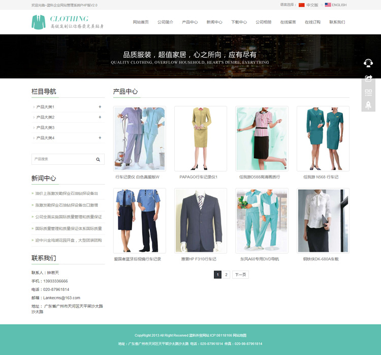 3.产品模块:产品支持二级分类,并可对产品直接下订单询价,且支持邮件通知,更符合企业营销。
