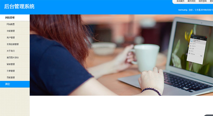 包含内容、后台页面、功能管理、用户管理、友情链接管理、关于我们、首页图片滚动、留言管理、文章管理、导航管理