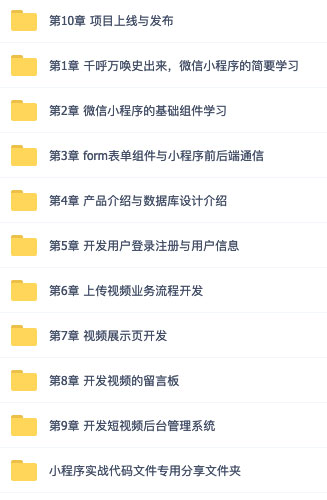 本课程基于微信小程序和目前主流的后端技术SpringBoot/SpringMvc来实现一个完整的短视频小程序。