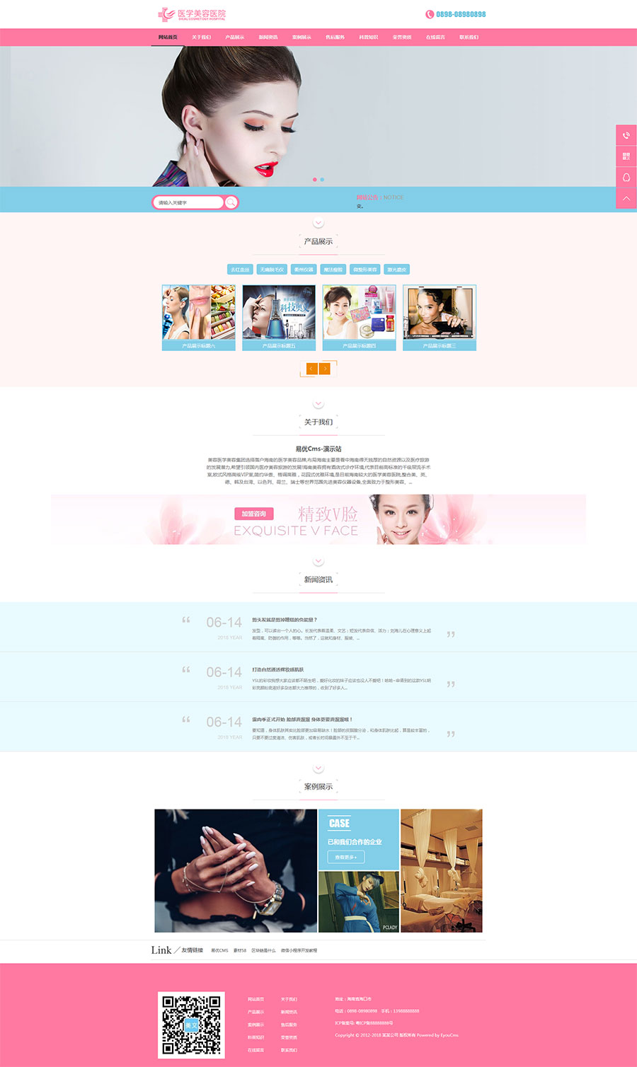 PHP粉红色美妆美甲医学美容医院网站源码 带手机版