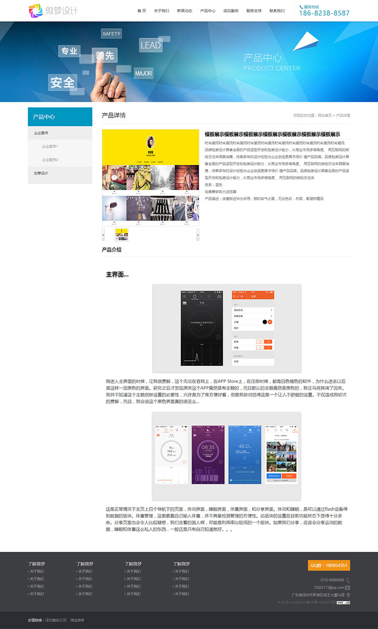 1.单页模块∶可发布企业的各类信息,如企业简介、组织机构、企业荣誉、联系方式等,并可随意增删。⒉.新闻模块:可发布企业新闻和行业新闻等,支持二级栏目,栏目个数无限制。
