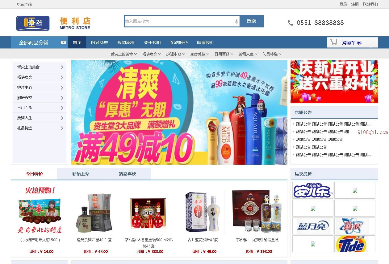 1、本源码是一个超市在线购物商城源码,该网上商城是给超市便利店等零售批发实体店定制的网上商城,主要针对周边配送,后台可定义配送范围,可在线支付和货到付款!