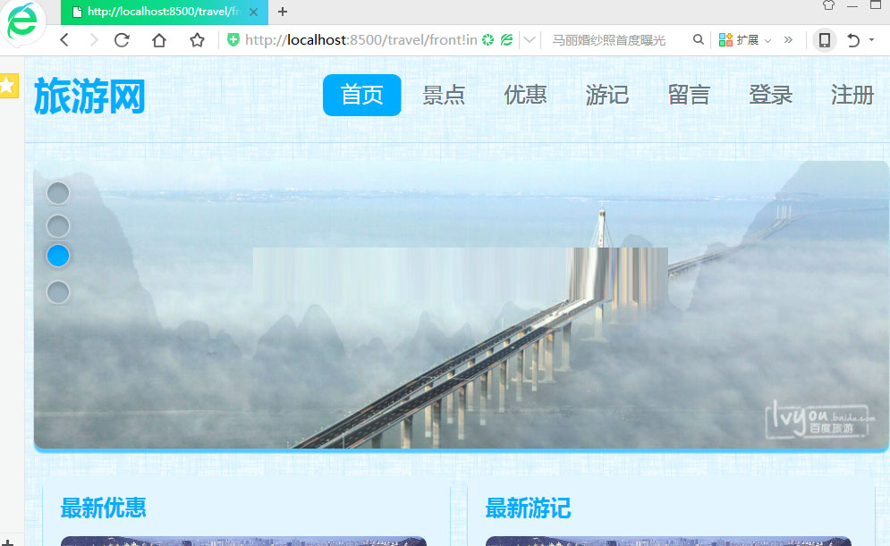 数据库表: 景点表(place), 优惠表(news), 游记表(note), 留言表(gbook)