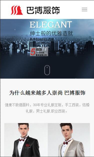 适用于男装品牌产品展示企业官网源码