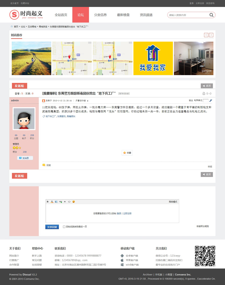1.版本支持:discuzx3.0版本,discuzx3.1版本,discuzx3.2版本,discuzx3.3版本。包括网站首页,论坛首页,论坛列表页,论坛内容页,论坛瀑布流,资讯列表页(支持多个),产品列表页(支持多个),关于我们频道页。