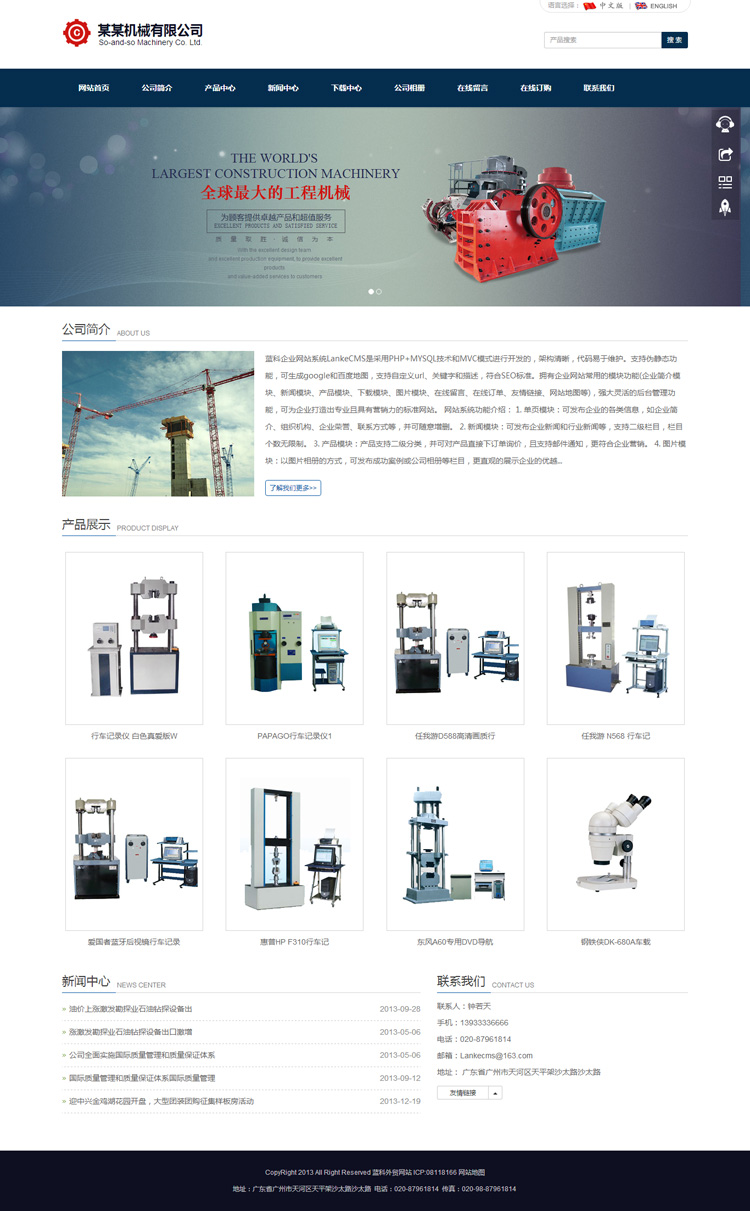 2.新闻模块:可发布企业新闻和行业新闻等,支持二级栏目,栏目个数无限制。