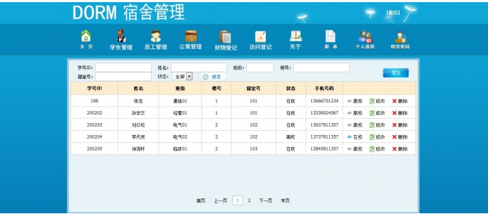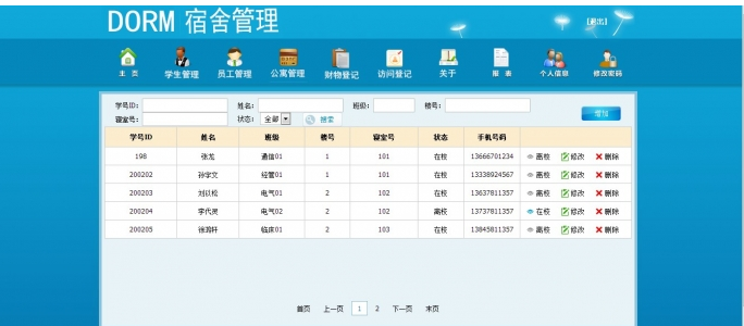 2. 院系、班级、学生信息管理。学生归属到某班某系,以及某栋楼的宿舍。
