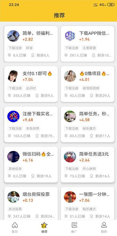 平均每天悬赏主会发出任务,手指点点赏金到手。