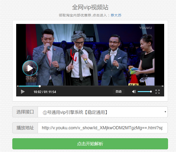进入网站后,提示先输入密匙,才可免费观看各大视频网站的视频,界面简洁,直接输入各大视频网站的播放地址,即可在线免费观看,还可根据需要加威信给密匙,各种功能看你怎么运用